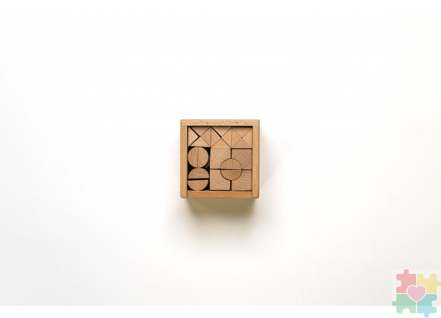Четвертый: восемь плашек в виде прямоугольных брусков, которые также складываются в куб - «куб из брусков». Дети превращаются в начинающих «строителей», обучаясь собирать из отдельных элементов цельный предмет.