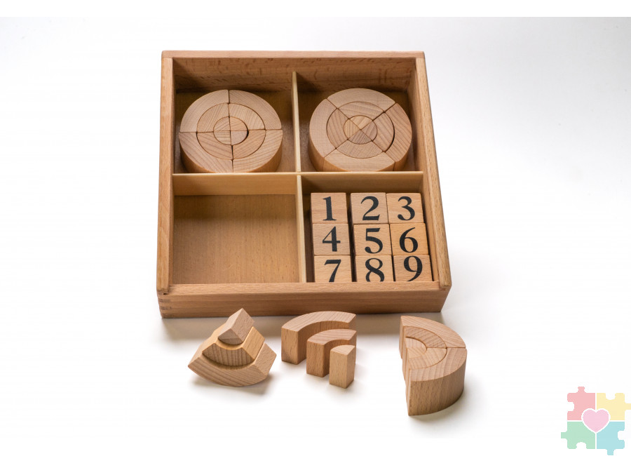 Первые шесть комплектов представляют базовые «дары» немецкого педагога, их использование помогает ребенку усвоить и почувствовать самые важные цвета и формы окружающего мира, а также познакомиться с основными абстрактными понятиями.