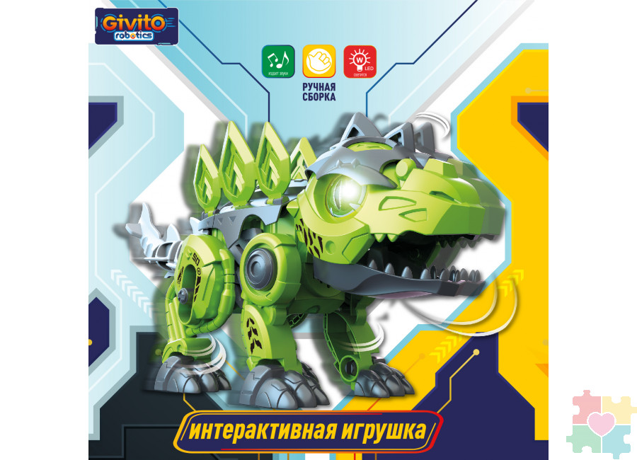 Интерактивный робот "Динозавр Стегозавр" — это уникальный конструктор, который позволяет детям не только собирать, но и управлять своим собственным динозавром. В собранном виде игрушка может передвигаться вперед, а также двигать своими конечностями и челюстью, что делает игру еще более увлекательной. Звуковые эффекты в виде рычания динозавра и подсветка глаз при включении создают атмосферу настоящего приключения. Этот конструктор развивает у детей творческое мышление, координацию и мелкую моторику. С реалистичными звуковыми эффектами и яркой подсветкой глаз, Стегозавр станет настоящим другом для вашего ребенка, открывая двери в мир приключений и фантазий!
