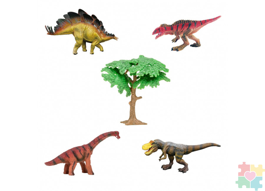 Если вам надо порадовать ребенка, Приобретите для него этот набор пластиковых фигурок динозавров. Нет на свете детей, равнодушных к доисторическим ящерам. А многие из них в дошкольном возрасте становятся настоящими экспертами по рептилиям Юрской эпохи. Это связано с психологическим этапом развития, когда у детей формируется устойчивый интерес в какой-нибудь области. Динозавры являются мировыми фаворитами детской увлечённости. Этот набор состоит из фигурки дерева и пяти фигурок динозавров: брахиозавра, двух тираннозавров, акрокантозавра и стегозавра. Ящеры великолепно исполнены из цветного литого пластика. Мелкие детали дополнительно прокрашены вручную. Литой пластик является очень прочным материалом, который не боится механических повреждений. Ребенок может устраивать баталии между своими динозаврами и это ничуть не повредит фигуркам. Чтобы пополнить коллекцию малыша, вы можете выбрать на нашем сайте другие наборы этой серии.