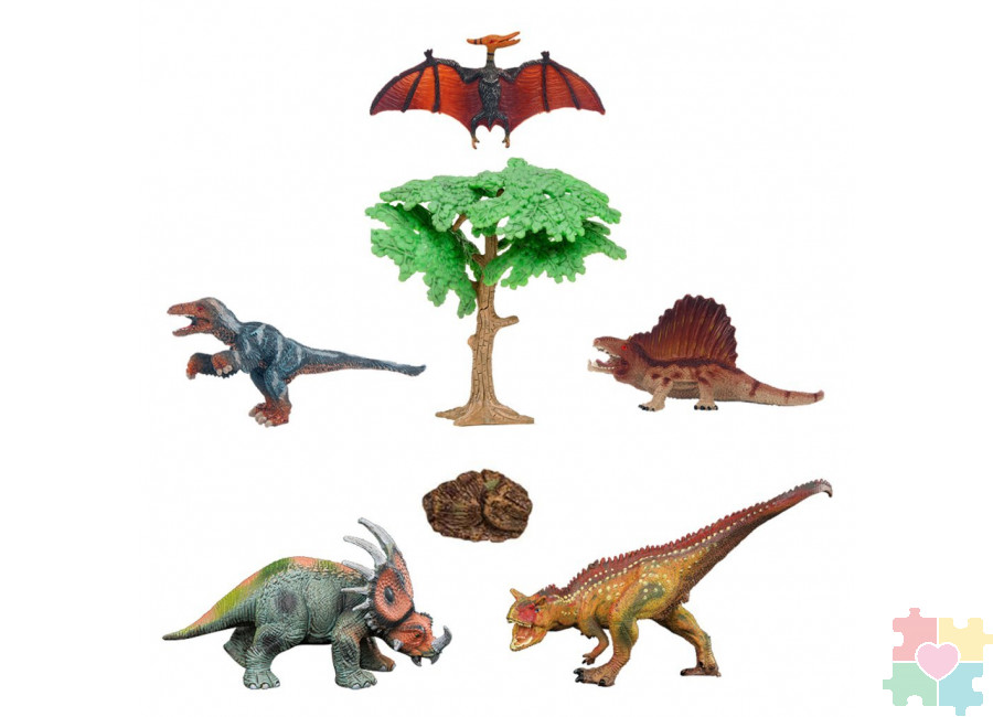 Динозавры и драконы для детей серии "Мир динозавров": птеродактиль, диметродон, акрокантозавр, троодон, стиракозавр (набор фигурок из 7 предметов)