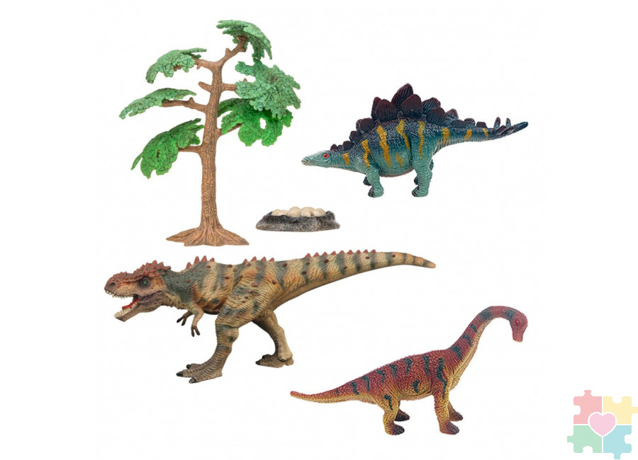 В данном наборе есть четыре фигурки животных: стегозавр, тираннозавр, брахиозавр; также есть дополнительные фигурки - камень и дерево - благодаря которым локация словно оживает. Уменьшенные копии доисторических исполинов произведены по современной технологии из литого пластика. Помогите ребенку найти познавательную информацию о каждом виде динозавров. Дети очень легко запоминают то, что их интересует. Литой пластик, из которого произведены все составляющие набора, устойчив к повреждениям. Внешний вид фигурок не пострадает, даже если ребенок будет разыгрывать эпичные сражения доисторических жителей Земли. Все мелкие детали игрушек прорисованы вручную, поэтому каждый представитель вымерших властелинов планеты выглядит самобытно. Присмотритесь к другим игровым наборам этой серии, чтобы создать совместно с ребенком коллекцию ящеров в едином стиле. Чтобы порадовать ребенка замечательным подарком, сделайте выбор в пользу этого замечательного игрового набора. Товар сертифицирован.