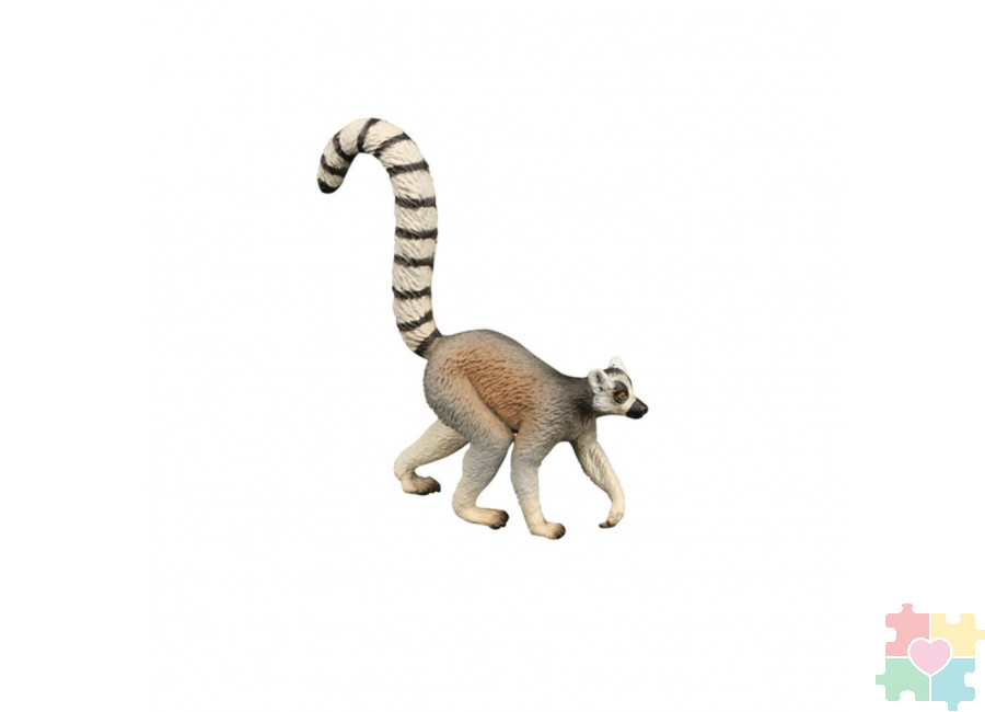 Фигурка кольцехвостого лемура является уменьшиной копией настоящего животного, ареал обитания которого занимает часть острова Мадагаскар. Это далеко-далеко. Ребенку, которому вы подарите игрушку, захочется увидеть это место на карте. Заодно покажите ему фотографии лемуров, пусть ребенок оценит сходство своей игрушки с природным прототипом. Расскажите малышу, что игрушечных дел мастера - технологи и дизайнеры - специально для того,чтобы добиться реалистичности, советуются с учеными-зоологами. А художники на производстве прорисовывают мелкие детали фигурок от руки. Впечатляет полосатый хвост кольцехвостого лемура. Вместе с ребенком найдите информацию о том, для чего этому животному нужен полосатый хвост. Детям нравится узнавать новое во время игры. На нашем сайте вы можете выбрать компанию лемуру в серии игровых фигурок " Мир диких животных". Ребенку может понравиться идея собрать тематическую коллекцию. Помогите ему. Это веселое и познавательное занятие. С фигурками можно играть, не опасаясь их повредить. Литой пластик не боится механических повреждений.
