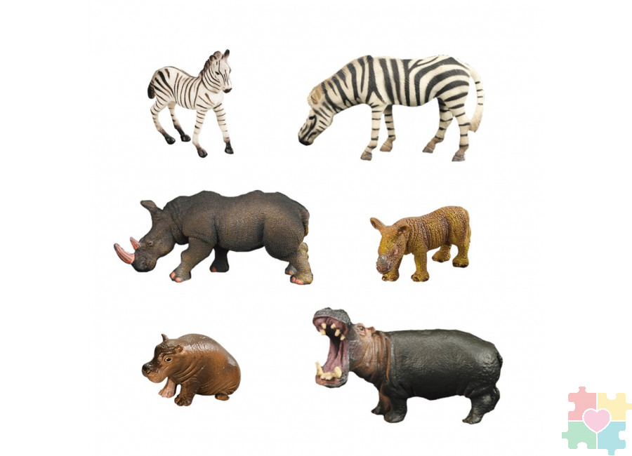 Набор фигурок животных серии "Мир диких животных": 2 зебры, 2 бегемота, 2 носорога (набор из 6 фигурок)