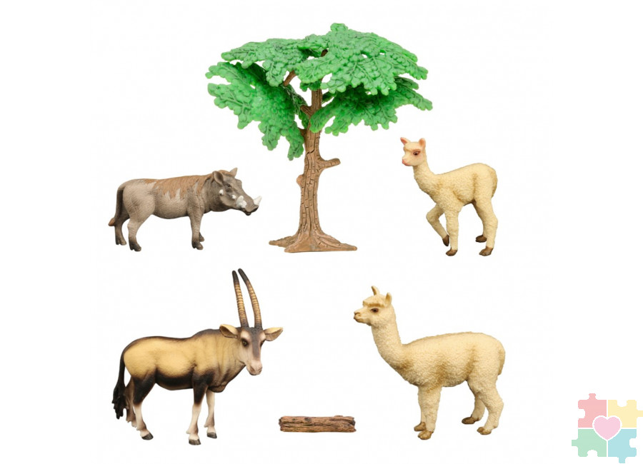 Набор фигурок животных серии "Мир диких животных": антилопа, 2 ламы, бородавочник (набор из 6 предметов)