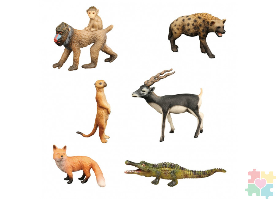 Набор фигурок животных серии "Мир диких животных": антилопа, гиена, лиса, сурикат, крокодил, обезьяна (набор из 6 фигурок)