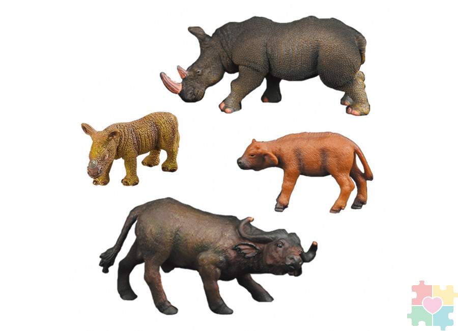 Набор фигурок животных серии "Мир диких животных": Семья буйволов и семья носорогов, 4 предмета