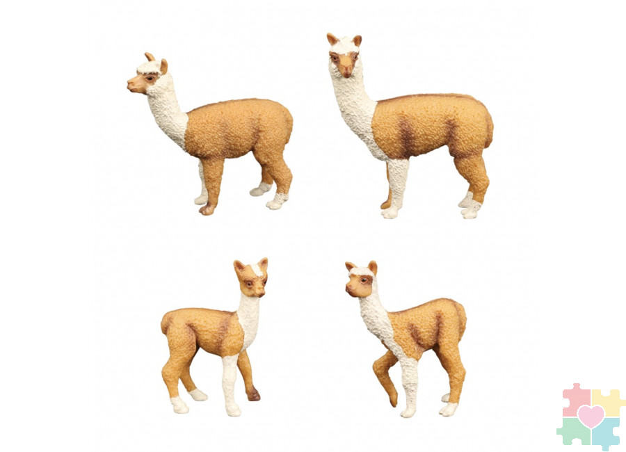Набор фигурок животных серии "Мир диких животных": Семья лам, 4 предмета (2 ламы и 2 детеныша)