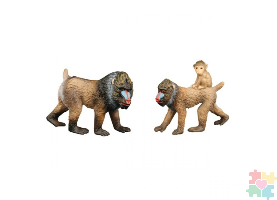 Набор фигурок животных серии "Мир диких животных": Семья обезьян мандрил, 2 предмета