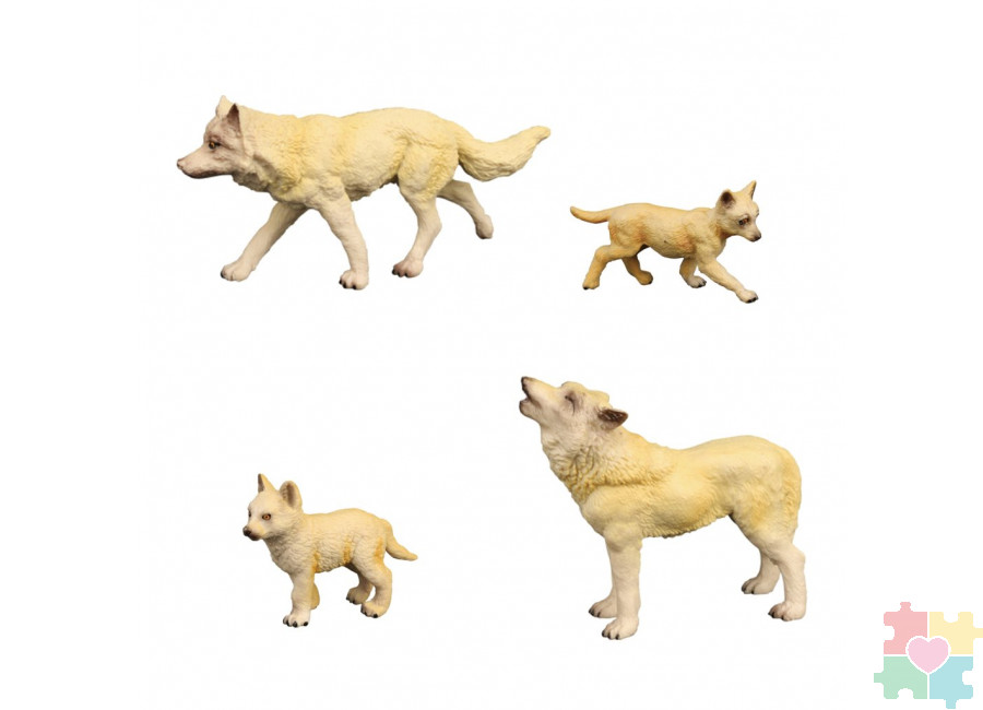 Набор фигурок животных серии "Мир диких животных": Семья полярных волков, 4 предмета (2 волка и 2 волчонка)
