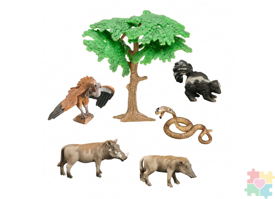 Набор фигурок животных серии "Мир диких животных": скунс, 2 бородавочника, змея, стервятник (набор из 6 фигурок)