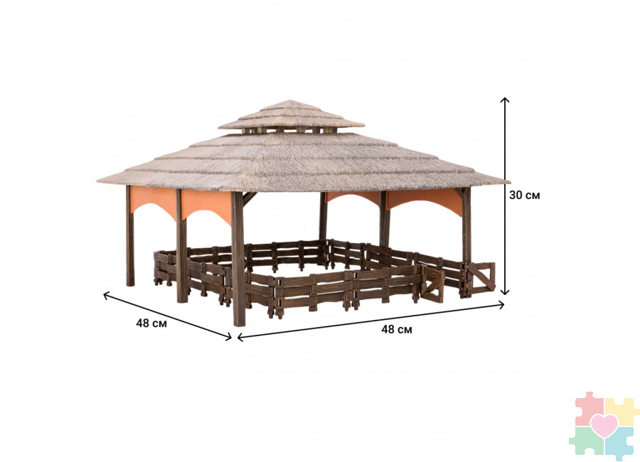 Перед Вами набор фигурок и игровой домик с инвентарем, которые являются уменьшенными копиями настоящих животных, людей и сооружений. Такая игрушка станет не только развлекательным подарком, но и весьма полезным. Помимо того, что с такой фермой можно придумывать самые разнообразные интересные сюжетные игры, так и еще развиваться, пополнять свой багаж знаний о животных нашей планеты. В данном случае, дети научатся ухаживать за животными фермы, кормить их, правильно распределять под навесом и т.д. Это приучает детей к порядку, к чувству ответственности и заботе о других. Каждая фигурка прорисована вручную специальными безопасными красителями, которые смогут сохранить свою стойкость на длительное время. Материал изготовления фигурок - высококачественный литой пластик, который также сохранит свой первоначальный вид на продолжительный период.
