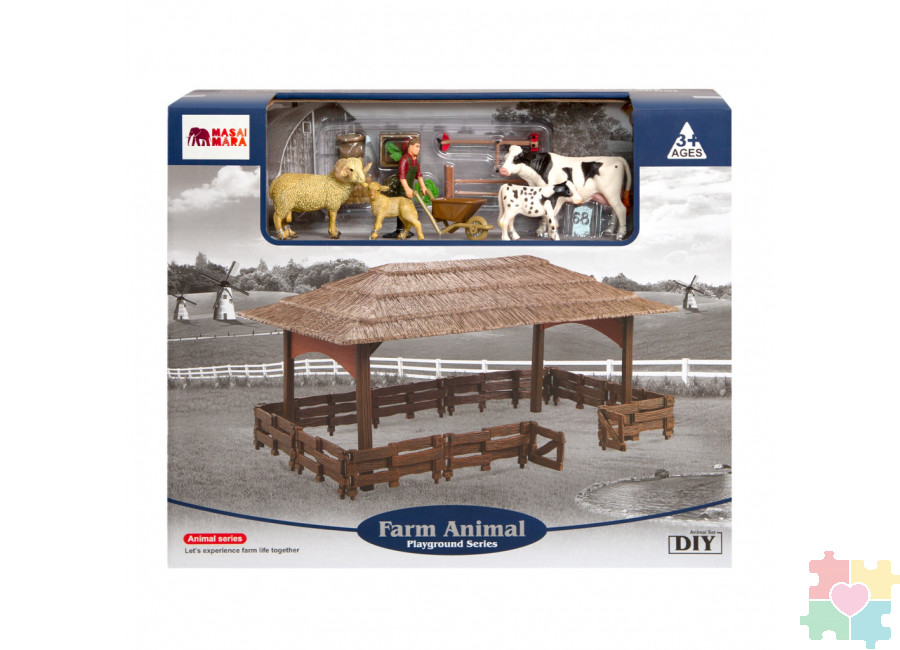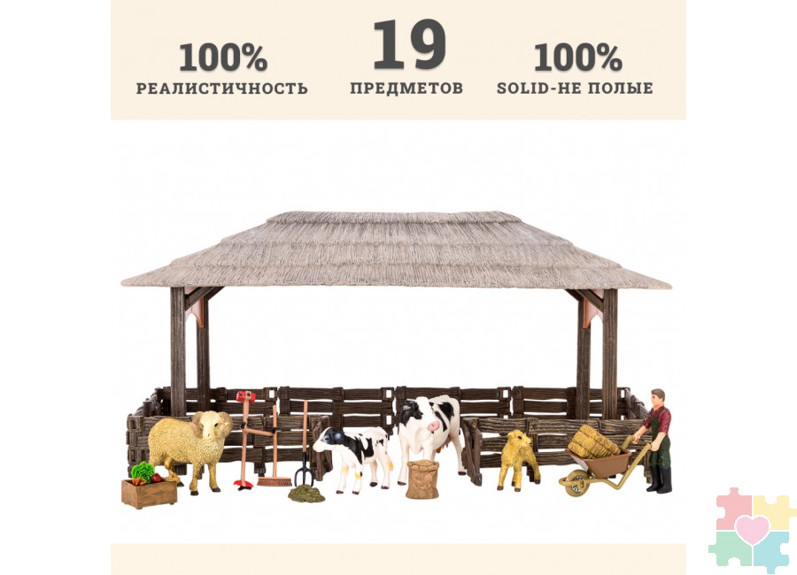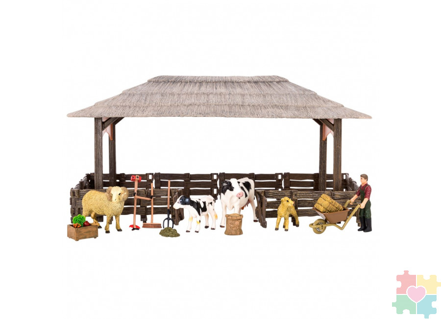 Набор фигурок животных серии "На ферме": Ферма игрушка, 19 фигурок домашних животных (коровы, овцы), персонажей и инвентаря