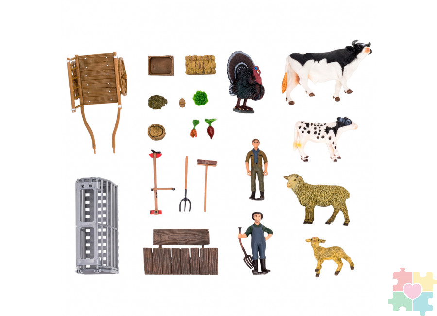 Домашние животные, птица и фермеры готовы встретиться с ребятами о время интересных занятий и увлекательных игр! Данный набор игрушек представляет из себя прекрасную модель реалистичной фермы в уменьшенном варианте специально для маленьких исследователей и юных фермеров! Каждый элемент представленной игрушка сделан очень качественно и детально, благодаря чему дети смогут еще лучше погрузиться в процесс занятий и игр. Качественные материалы и безопасные для здоровья краски гарантируют долговечность игрушек и безопасность во время использования набора. Если вы искали игрушку, которая поможет детям в развитии внимательности, памяти, моторики и фантазии то эта ферма то, что вам нужно! Также на нашем сайте вы сможете найти и другие фермерские наборы, которые прекрасно подойдут к этому.