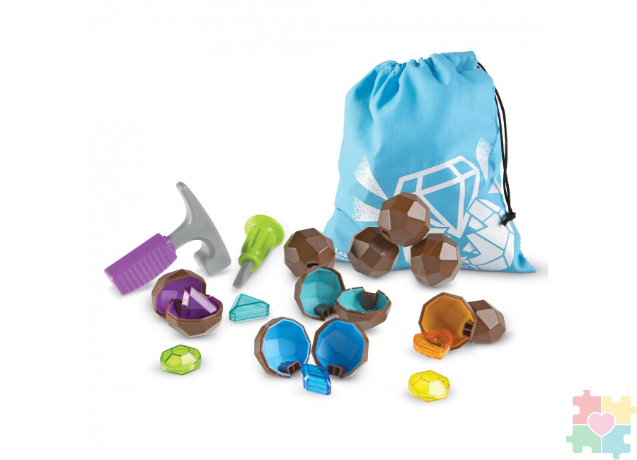 Для ознакомления ребенка с основами геологии, понятиями, различными драгоценными камнями. Также игры с этим набором развивают моторику, запоминание форм и цветов, счет и навыки сортировки.