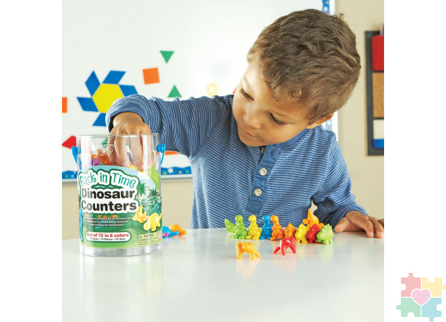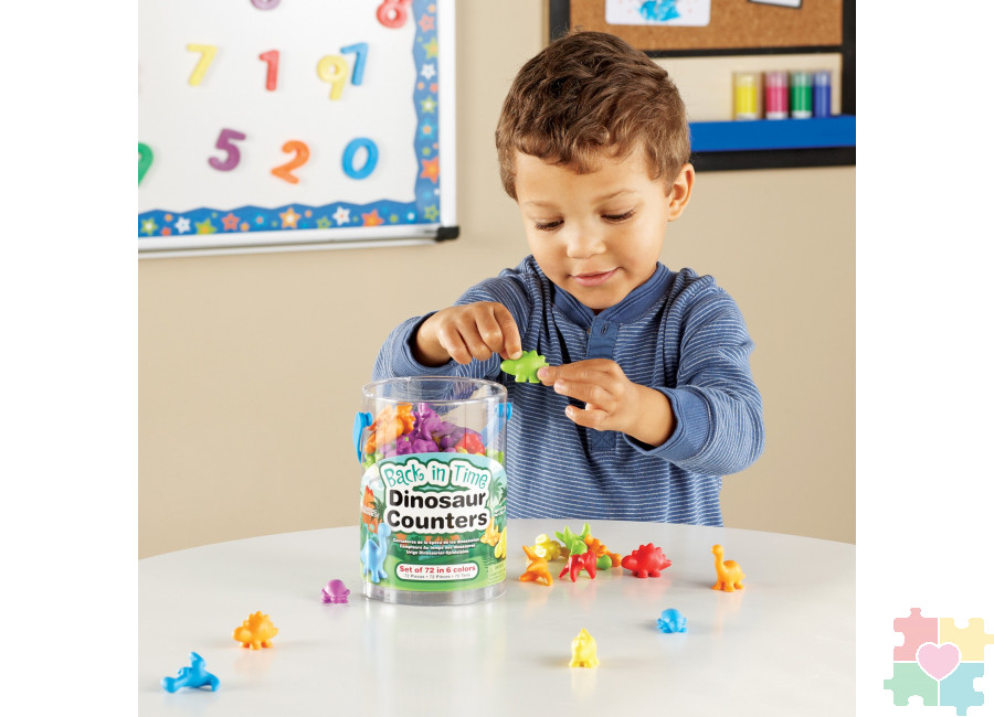 - В комплект входят 72 фигурки динозавров, составленных из шести цветов.
