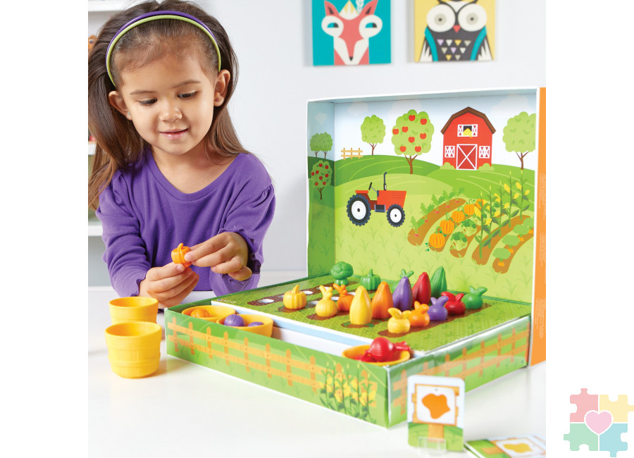 Увлекательная и развивающая игра для детей, где каждый ребёнок с удовольствием будет проводить время, выращивая реалистичные овощи. Набор выполнен специально для детей: подобраны самые яркие и красочные овощи, красивые плетеные корзиночки и таблички. Декорации игры выполнены таким образом, чтобы создать самый настоящий 3D эффект огорода. Такая игрушка не только увлечет Вашего ребёнка, но и обучит основам математических действий, счету. Игра развивает моторику, распознавание цвета, учит навыку сортировки и распределению. Такой занимательный набор замечательно подойдёт как для индивидуальной игры, так и для групповой. Соберите команду друзей и весело проводите время с игрой “Выращиваем овощи”!