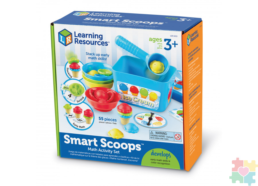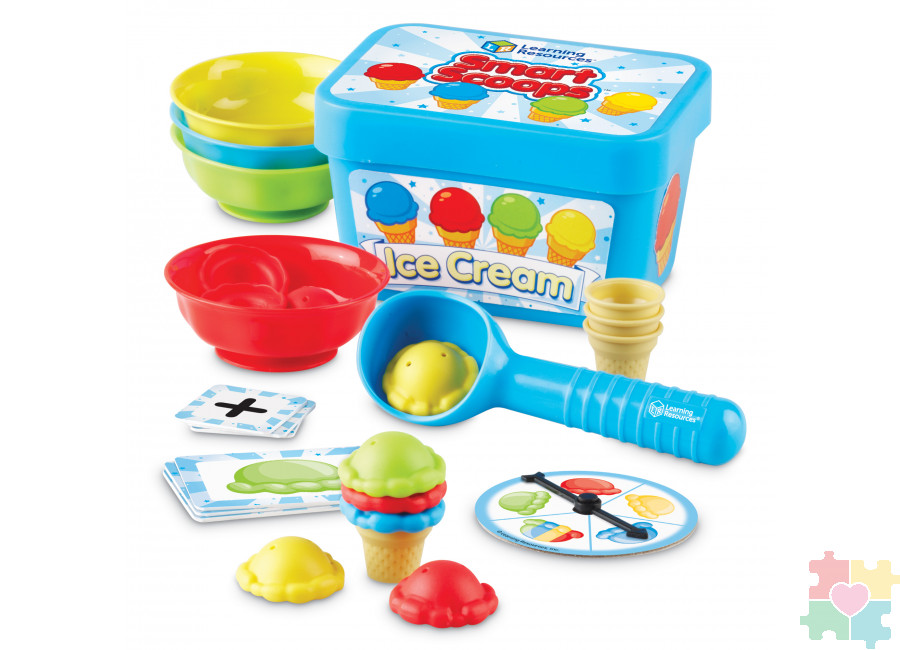 Этот набор конструктора имеет детали не совсем привычной “стандартной” формы в виде вафельных рожков и “шариков” мороженого, которые необходимо крепить друг на друга, формируя фигурку лакомства снизу вверх. Помогает в игровой форме развитию у детей полезных навыков, таких как распознавание цветов, сопоставление, сортировка и счет, логическое мышление, наблюдательность; поможет обучить ребенка начальным навыкам конструирования и сборки. В состав комплекта входят рожки (4 шт.), 20 шариков мороженого (четырех разных цветов), 23 двухсторонних карточки для занятий, ложечку, рулетку со стрелкой, контейнер для мороженого, 4 украшения-бантика и инструкция на нескольких языках. Крутя стрелочку по очереди, дети при помощи ложечки берут выпавший случайный предмет и поочередно формируют готовую фигурку рожка с мороженым. Набор карточек для занятий включают в себя карточки с цифрами, узорами, картинками, математикой и словами. Руководство по упражнениям содержит семь упражнений для формирования ранних навыков. Имеется также контейнер для хранения, который обеспечивает сохранность всех составляющих набора. Товар сертифицирован. Предназначен для использования детьми от 3-х лет.