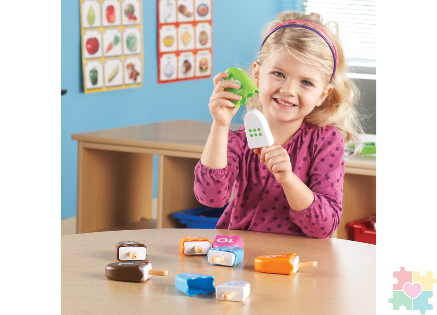 Очень важно как можно раньше начинать развивать у детей навыки запоминания цифр и счета. Это поможет им в будущем и облегчит понимание многих вещей и школьных предметов. Данный набор разработан специально для того, чтобы дети незаметно для себя начали запоминать числа и их соответствия с количеством предметов. Комплект состоит из десяти красочных мороженных с крышечками. На само мороженное нанесено определенное количество точек. Когда ребенок надевает на него крышку, то видит число, соответствующее количеству точек. Такой процесс игры тренирует сразу несколько очень важных навыков. Во - первых во время занятий ребенок запоминает числа и учится считать. Во - вторых снимая и надевая крышки тренируется моторика и координация рук и пальцев. Это замечательный набор, который прекрасно подойдет для регулярных занятий, которые безусловно пойдут на пользу всем детям!
