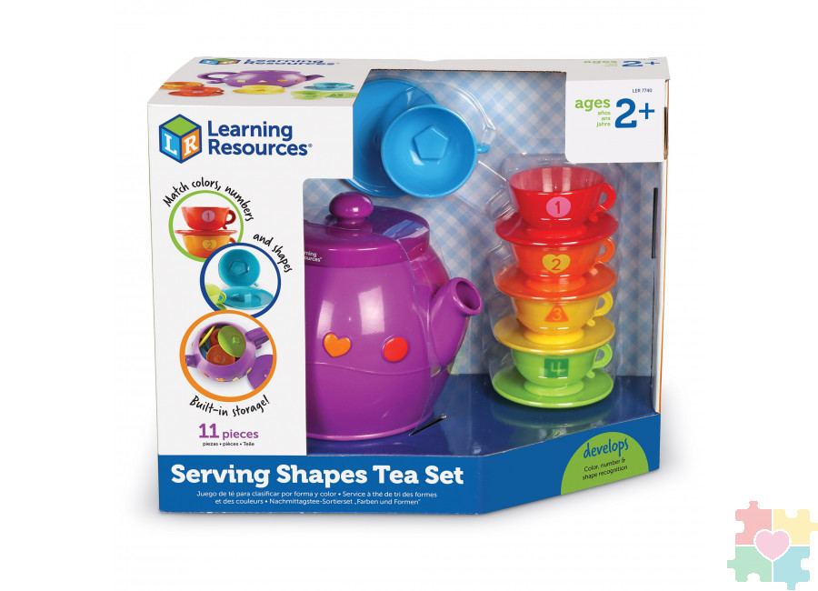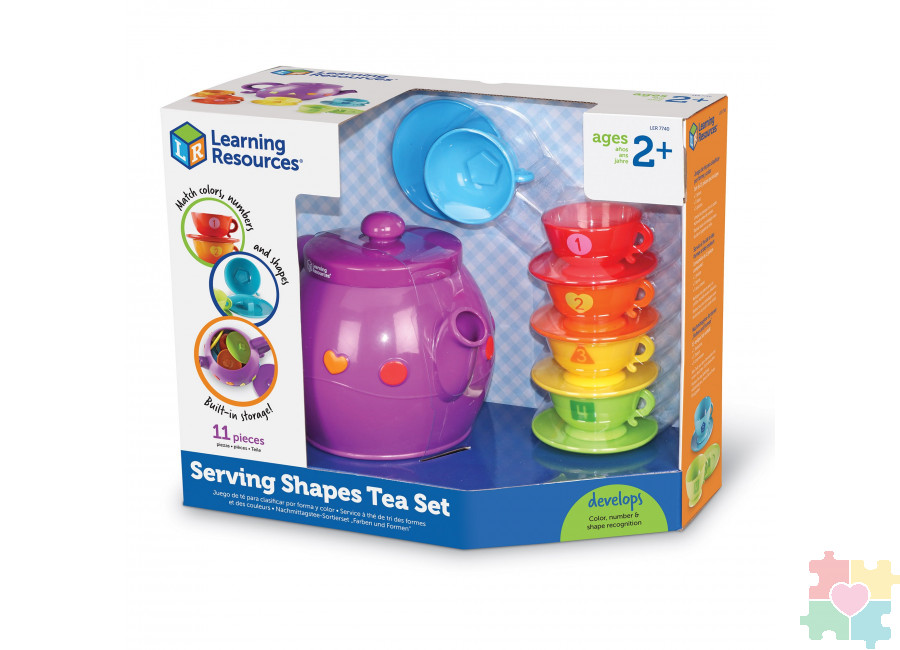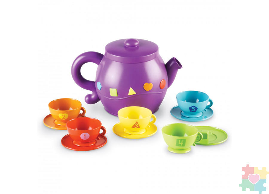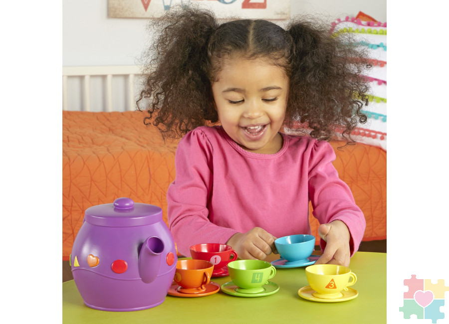 Представляем вам замечательный чайный набор, который отлично подойдет для различных детских игр. Во время занятий с таким комплектом у детей хорошо развиваются социальные навыки, распознавание и изучение цветов, определение форм и размеров, моторика, счет от одного до пяти. В наборе содержатся специальные чашечки и блюдца. На чашечках нарисованы фигуры и цифры. Также на дне есть специальные выемки, повторяющие фигуры. На дне блюдец также есть фигурные выемки, куда можно поставить соответствующую чашку. Дети могут сами придумывать или вы дадите им интересные и увлекательные задания. Например, попросите детей рассортировать чашечки по определенному признаку (по цвету). Или можно собрать их чашек башенку, а потом попросить ребенка собрать такую же! Это небольшое количество занятий, которые можно придумать, используя этот набор. Приобретая этот чайный набор, вы подарите детям много веселья и радости!