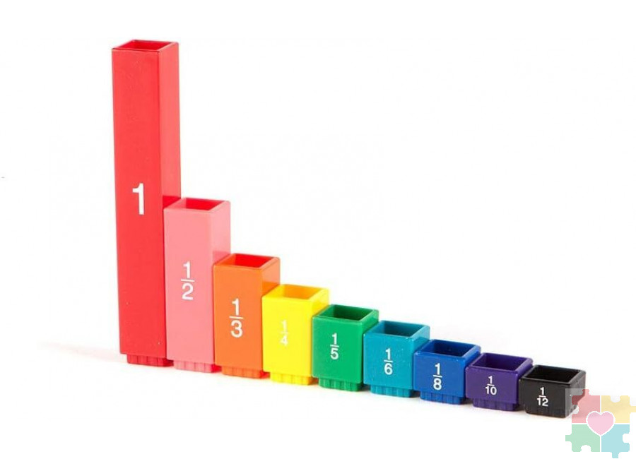 - Научите ребенка устанавливать равенства между разными цветами кубиков, иллюстрируя отношения долей и процентов;