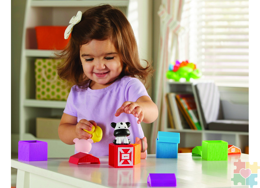 Набор из милых и очаровательных фигурок животных и домиков для самых маленьких! Разноцветные фигурки сельскохозяйственных животных развивают у малыша ряд навыков. Например, они все разноцветные и ребенок, благодаря этому, научится распознавать цвета. У каждой коробочки спереди написана цифра. Это способствует развитию навыка распознавания чисел. Также у каждой коробочки открывается крышечка, где прячется маленькая фигурка. Все элементы набора яркие и красочные, очень удобно держать в руках. Сборка и разбор по частям мелких предметов развивает моторику рук у детей. Таким образом, такой многофункциональный набор станет замечательным развивающим подарком для Вашего малыша!