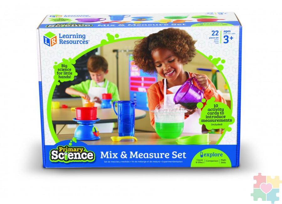 - Помогайте детям измерять объемы и вес разными приспособлениями из набора.