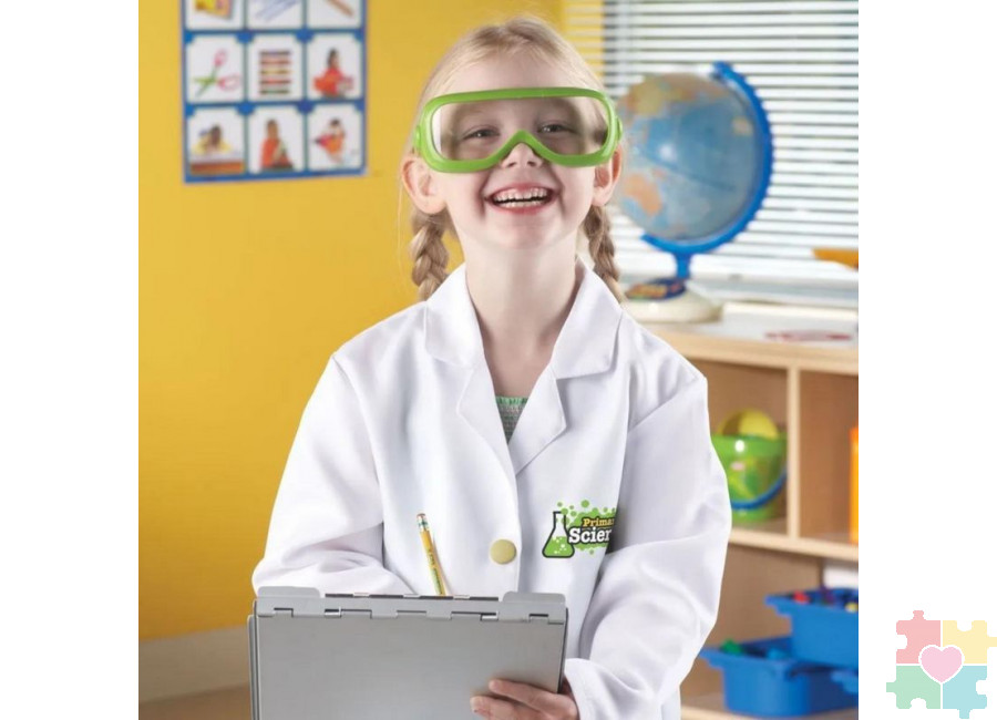 Идеальное дополнение для первых опытов маленьких исследователей! Защитите глаза и одежду ребенка с помощью специальных лабораторных очков и халата. Вместе с этим комплектом можно использовать наборы из серии “Моя первая лаборатория”. Например, Аквалогия Делюкс. Этот набор - прекрасная первая лаборатория для детей от 3-х лет! Содержит все необходимое для проведения разнообразных экспериментов с водой и другими жидкостями - добавьте соответствующие ингредиенты, чтобы многократно увеличить количество опытов и разнообразить времяпрепровождение с ребенком при помощи положительных эмоций! В состав комплекта входят следующие предметы: ножницы-ложки, пробирки и колбы, волнистая пипетка, шприц, воронка, палочки для выдувания мыльных пузырей, Архимедов винт (малый), бутылка-сжималка, подставки и карточки с заданиями (англ.яз.). Подобные игры способствуют развитию интереса ребенка ко всему новому, побуждая его познавать мир; отлично развивают мелкую моторику, координацию движений, ловкость и точность; помогает познакомиться с иностранным языком - это облегчит обучение в школе в будущем. Ребенок может заниматься с представленным набором один или с группой других детей. Товар сертифицирован. Поставляется в картонной коробке, которая одновременно послужит отличным местом для хранения набора.