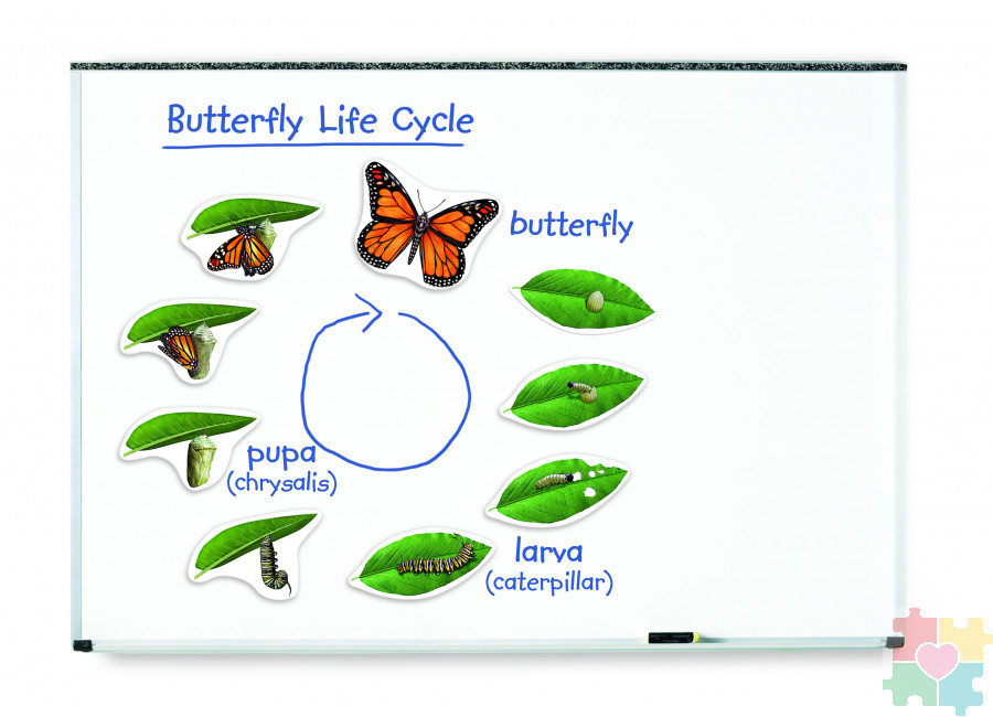 Игровой набор из качественных и красочных магнитов, который поможет ребенку изучить жизненный цикл бабочки. В этом наборе представлен цикл бабочки-монарха. Такая полезная игра несомненно поможет вам рассказать детям что такое метаморфозы, жизненный цикл, стадии развития бабочек и другие увлекательные факты! Этот набор безусловно понравится детям своей простотой использования и большими магнитами, на которых можно помечать нужное маркером. Работа с подобными играми влияет на развитие у ребенка интереса к окружающему миру и науке. В комплекте поставляется инструкция с принципом работы.