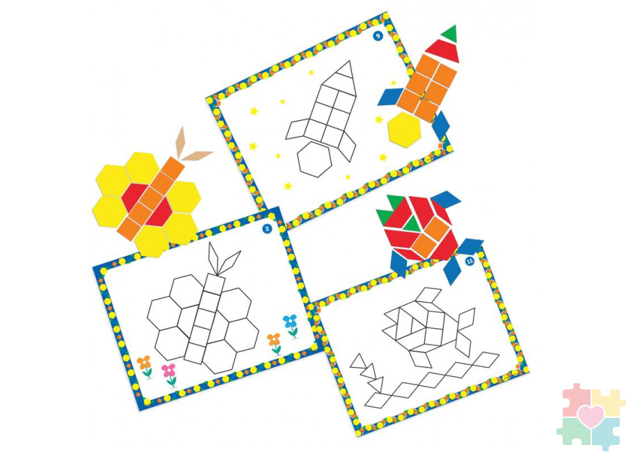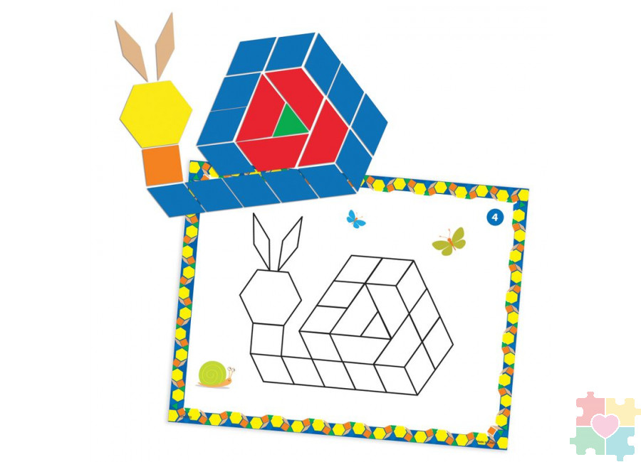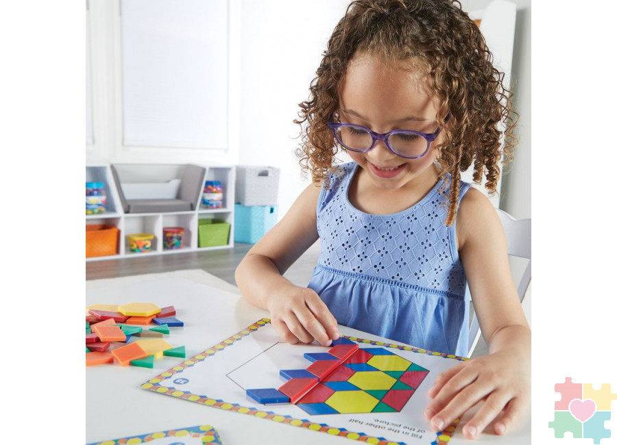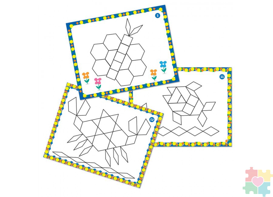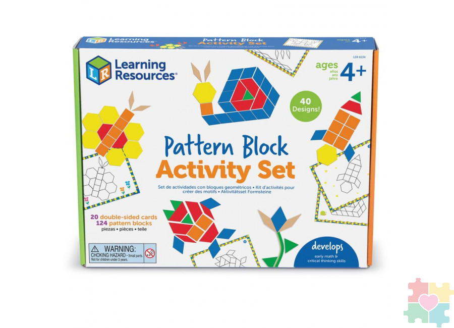 Комплект включает в себя 124 пластиковых фигуры и 20 карт с изображением шаблонов. Используйте этот набор геометрических блоков в шести формах и шести цветах для изучения закономерностей, симметрии, и измерения площади. Складывайте красочную мозаику. Эта игра позволяет улучшить знание языков, распознавание цвета, формы, развитие воображения, творческих навыков и мелкой моторики рук. Карточки подходят для работы со всеми наборами пластиковых блоков (продаются отдельно). Используйте блоки, чтобы сделать 40 уникальных геометрических рисунков на 20 двухсторонних картах. Такая захватывающая игра понравится любому ребёнку без исключения. Составляйте разные фигуры и даже целые картины, ориентируясь на методические рекомендации или воображение. Изучайте цвета и формы в процессе игры с набором, используйте различные техники для лучшего запоминания формы и цвета. Например, ассоциации: прямоугольник похож на многоэтажный дом, а круг – на солнышко. Такой занимательный набор подойдёт как для индивидуальных, так и групповых игр.