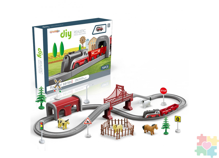 Железная дорога игрушка "Мой город, 70 предметов", на батарейках
