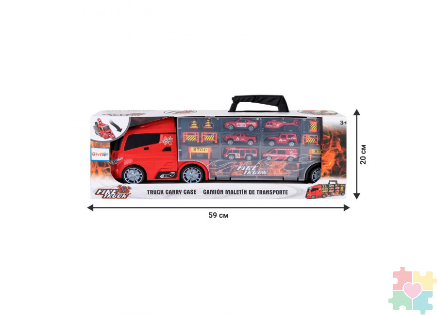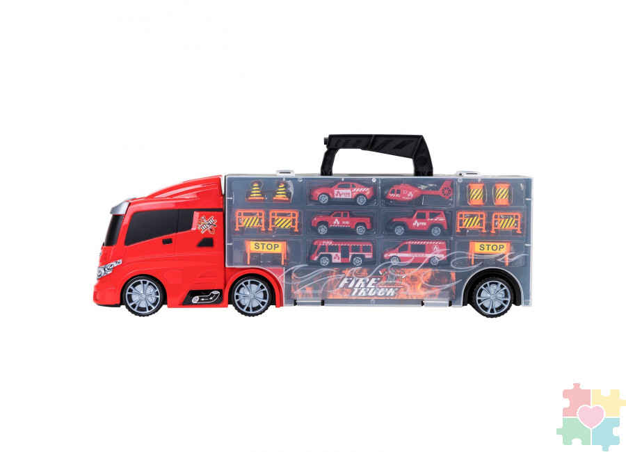 Быть членом спасательной команды - эта именно та самая мечта, которая озаряет детские глаза. Спасательный грузовой автомобиль (Автовоз- кейс 51, 5см. с тоннелем) превратит ваших малышей в ответственных пожарных. Автовоз не только грузовой транспорт, но и система хранения мини-автомобилей и спецтехники. В кабине присутствует ускоритель машин, для более динамичной игры. Кейс имеет очень удобную ручку, что позволит взять его с собой в самые разные места. Великолепная детализация всех элементов игрушки. Вдохновитесь творческими игрушечными транспортными средствами "Служба спасения" и найдите идеальный подарок для своего ребенка. В нашем каталоге вы можете выбрать игровой набор разной тематики для своего ребенка. Переходите и выбирайте военный, полицейский или пожарный набор. Собери всю коллекцию!