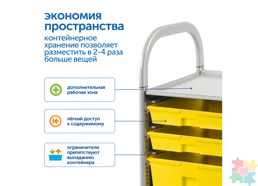 - Детские сады и ясли - обеспечение централизованной зоны хранения дидактических пособий и игрушек;