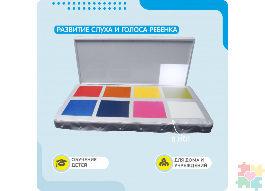 Светомузыкальный комплекс в виде световых классиков - это компактная и безопасная игровая площадка для помещений, которая поможет ребенку развить музыкальные и творческие способности. Напольный мягкий модуль имеет размеры 115х50 см и выполнен из экокожи, что делает его безопасным для детей от 3-х лет. Имеет крышку, что очень удобно для хранения.