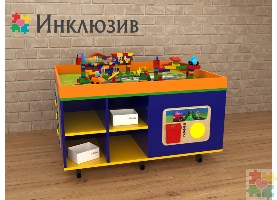 STEAM-стол является самым оптимальным решением при выборе модуля для групповых и индивидуальных развивающих занятий с детьми. Расположенная на поверхности стола локация поможет сформировать у детей картину мира в целом и отдельных его составляющих. На боковых сторонах стола размещены тактильные развивающие приспособления – аналог бизиборда. В ячейках стола хранятся боксы, наполнение каждого – это отдельная развивающая игра, предназначенная для развития разнообразных навыков у детей.