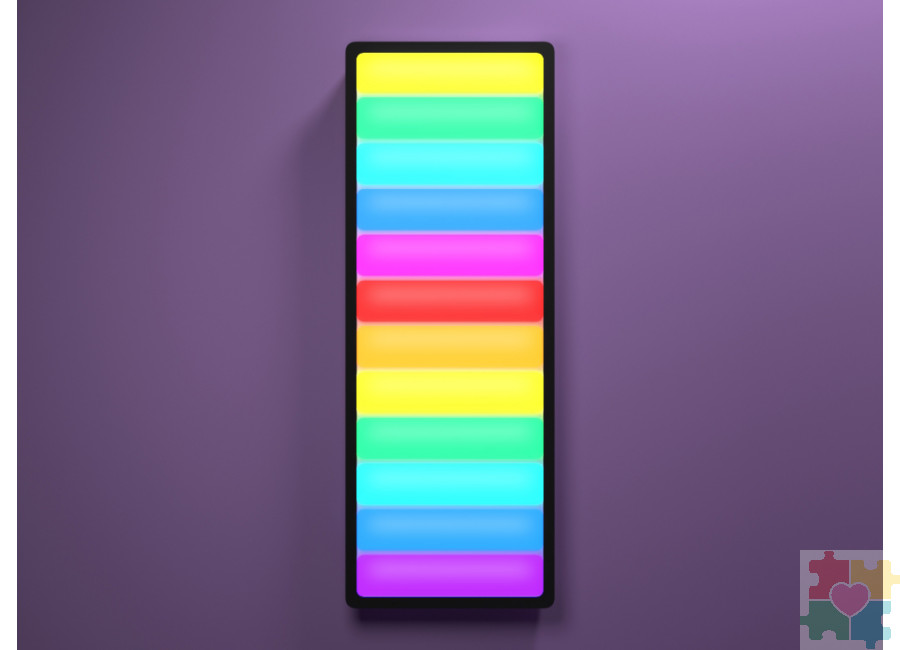 Интерактивная светозвуковая панель "Лестница света" (12 ячеек) станет отличным дополнением в сенсорную комнату. Панель способствует развитию голоса, зрительной памяти, снятию стресса и поднятию настроения. Свет и звук в комбинации работают на поддержание эмоционального комфорта.