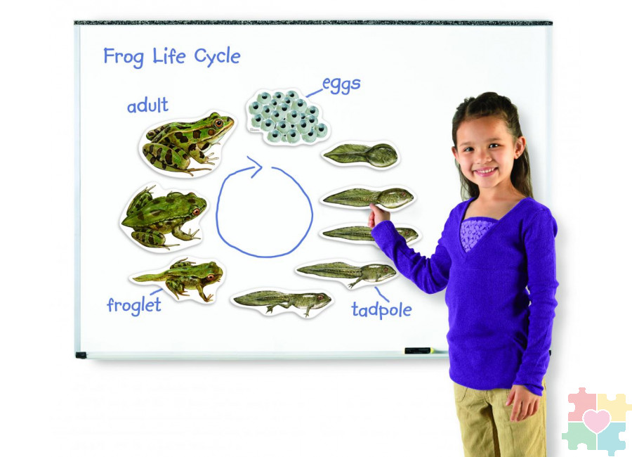 Игровой набор из качественных и красочных магнитов, который поможет ребенку изучить жизненный цикл бабочки. В этом наборе представлен цикл лягушки обыкновенной. Такая полезная игра несомненно поможет вам рассказать детям что такое метаморфозы, жизненный цикл, стадии развития лягушек и другие увлекательные факты! Без сомнений, детям очень понравится наблюдать, как из маленького головастика постепенно вырастает целая лягушка! Этот набор безусловно понравится детям своей простотой использования и большими магнитами, на которых можно помечать нужное маркером. Работа с подобными играми влияет на развитие у ребенка интереса к окружающему миру и науке. В комплекте поставляется инструкция с принципом работы.
